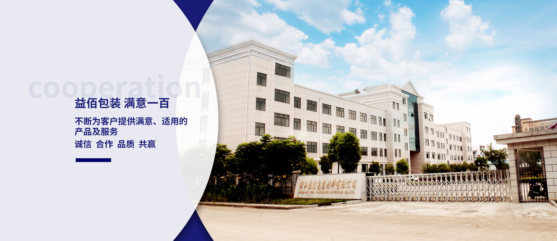 浙江益佰包裝材料有限公司位于浙江省衢州市,地處浙江西部,錢塘江上游,南接福建,西連江西,北鄰安徽,浙江省內與杭州、金華、麗水三市相銜。是浙西的交通樞紐和政治、經濟、文化中心,有四省通衢之稱。 公司成立于2010年11月,位于浙江省衢州市柯城區航埠工業功能區,占地40余畝,擁有4條國內領先的專業PVDC涂布膜生產線,年生產能力10000噸以上。產品包括高阻隔PVDC涂布薄膜、PVA(PVOH)涂布薄膜、丙烯酸涂布薄膜等。其中PVDC涂布薄膜系列是目前塑料材料中對氧氣、水汽等氣體阻隔性能優異的包裝材料,耐各種化學物質的侵蝕,安全、無毒。國際上廣泛應用于各類食品、醫藥、紙上餐具、電子的包裝。